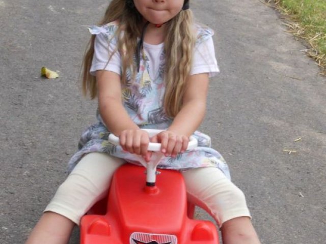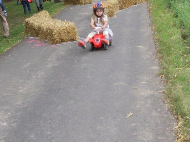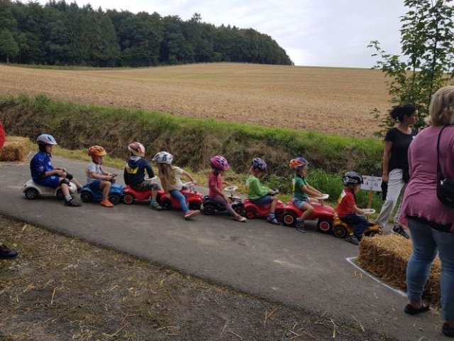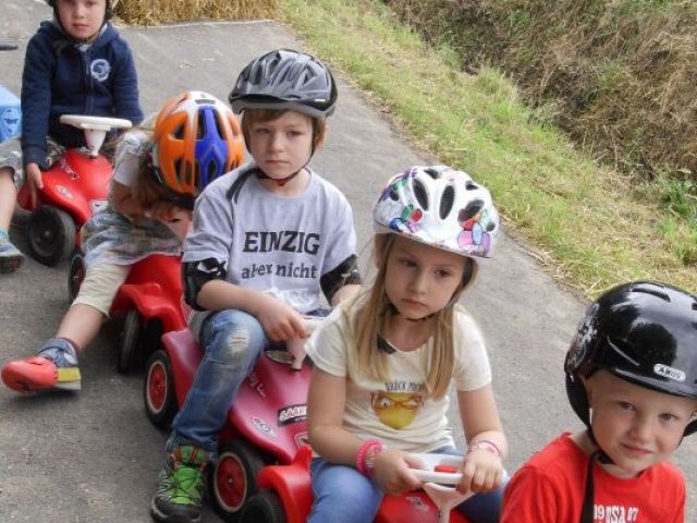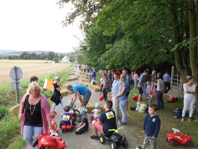 Obernjesa, 20.08.2016, 15.00 Uhr: Die Sonne brennt, die Rollen rumpeln, weil immer wieder Plastikflitzer über den Asphalt sausen… Eltern feuern ihre Sprösslinge an…